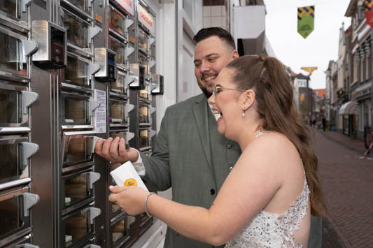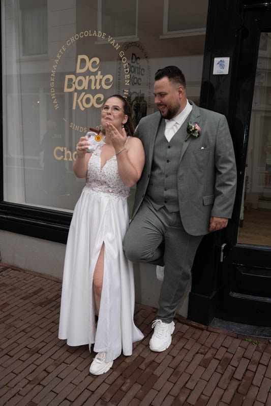 Wat een feest was dit in Schiedam. Vanwege het 750 jaar bestaan werd er een trouwmarathon gehouden in het mooie stadhuis. Ook zijn we nog mooie foto’s wezen maken in het centrum. Een lekkere chocoladereep van de Bonte koe kon hierbij niet ontbreken.