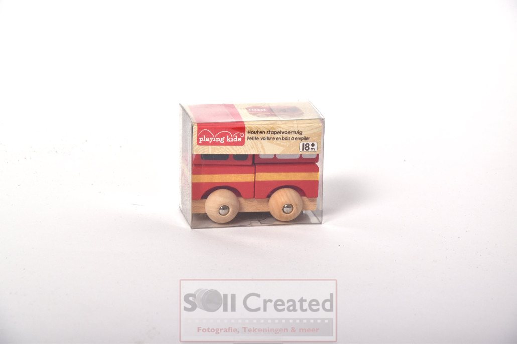 Houten stapelvoertuig rood, geschikt voor kinderen vanaf 18 maanden.